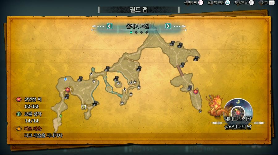 마지막 던전 진행하기 직전 보물상자 찾으러 다니면서 정리해볼겸 심심해서 순서대로 보물상자와 선인장 스샷 올려봅니다.