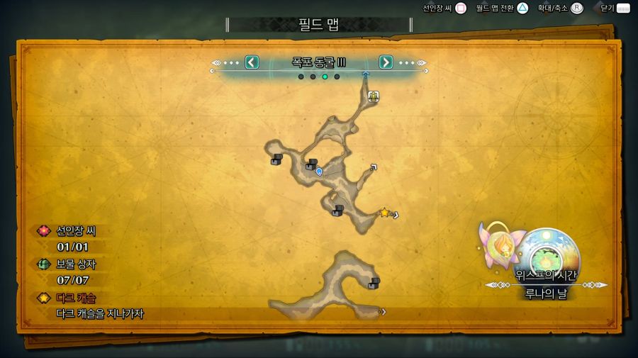 특별한건 없는데 혹시 폭포동굴 두번째맵 가운데에 있는 상자 위치 못찾겠는 분들은 위쪽으로 해서 돌아오시면 됩니다.